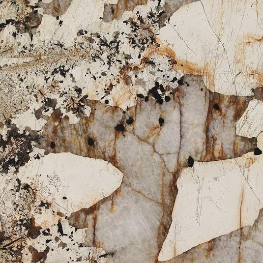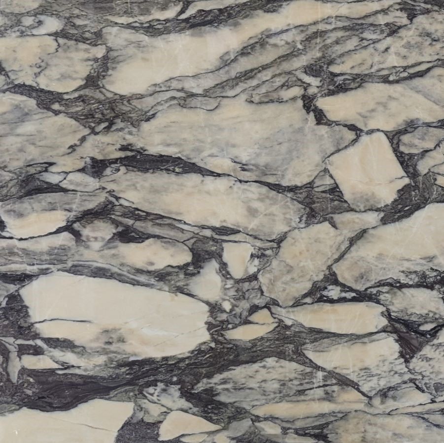 A distinctive natural stone characterized by fragmented veining and dramatic movement, breccia marble is formed when broken pieces of marble are naturally fused together over time. The result is a richly layered surface with bold patterning and tonal depth—no two slabs are ever alike.